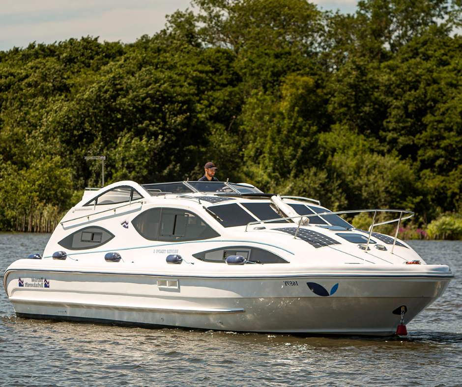 The sliding canopy means this new boat will fit under all the bridges on the Norfolk Broads. (provided we don’t get a lot of rain coinciding with high spring tides)